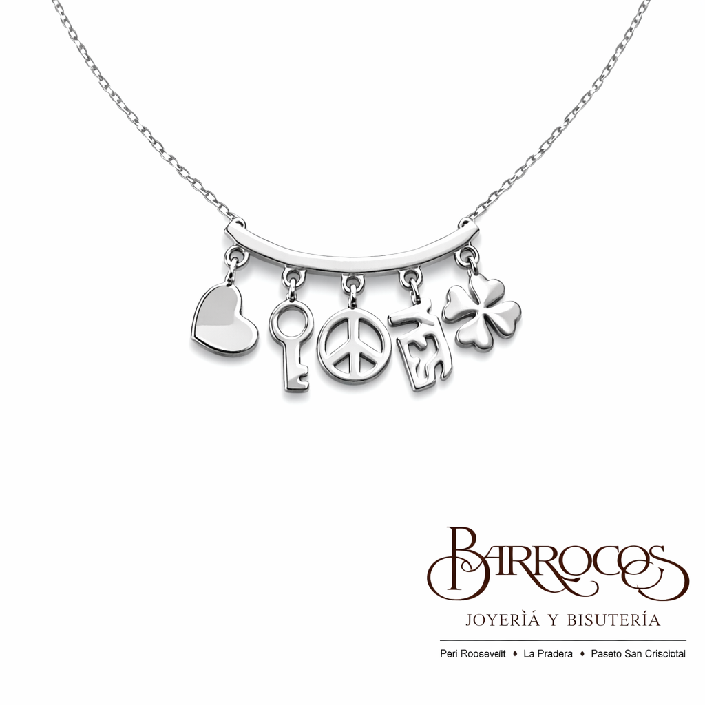 Cadena Plata Italiana 925, con Dije de Charms Variados, Tamaño Mediano