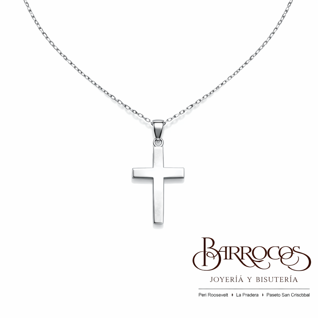 Cadena Plata Italiana 925, con Dije de Cruz Lisa, Tamaño Pequeño