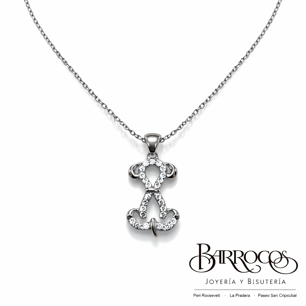 Cadena Plata Italiana 925, con Dije de Perrito con Circonia, Tamaño Mediano