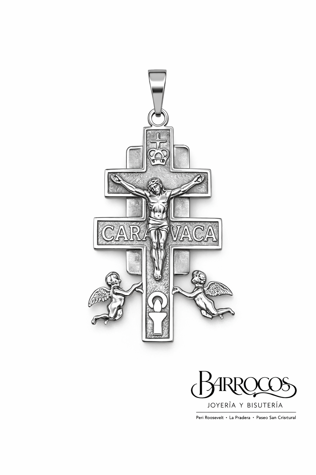 Dije Plata Italiana 925, con Cruz Caravaca, Tamaño Mediano