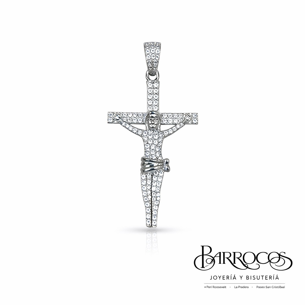 Dije Plata Italiana 925, Cruz con Circonia Grande