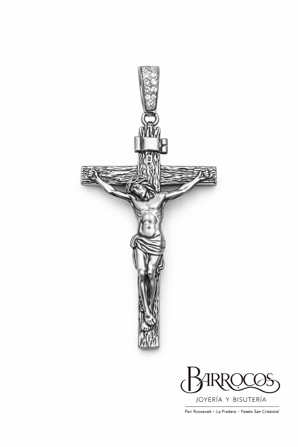 Dije Plata Italiana 925, con Cruz Mate, Tamaño Mediano