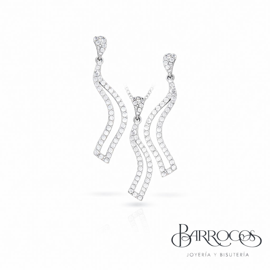 Juego de Plata Italiana 925, con Circonia, Aretes Largos y Cadena con Dije