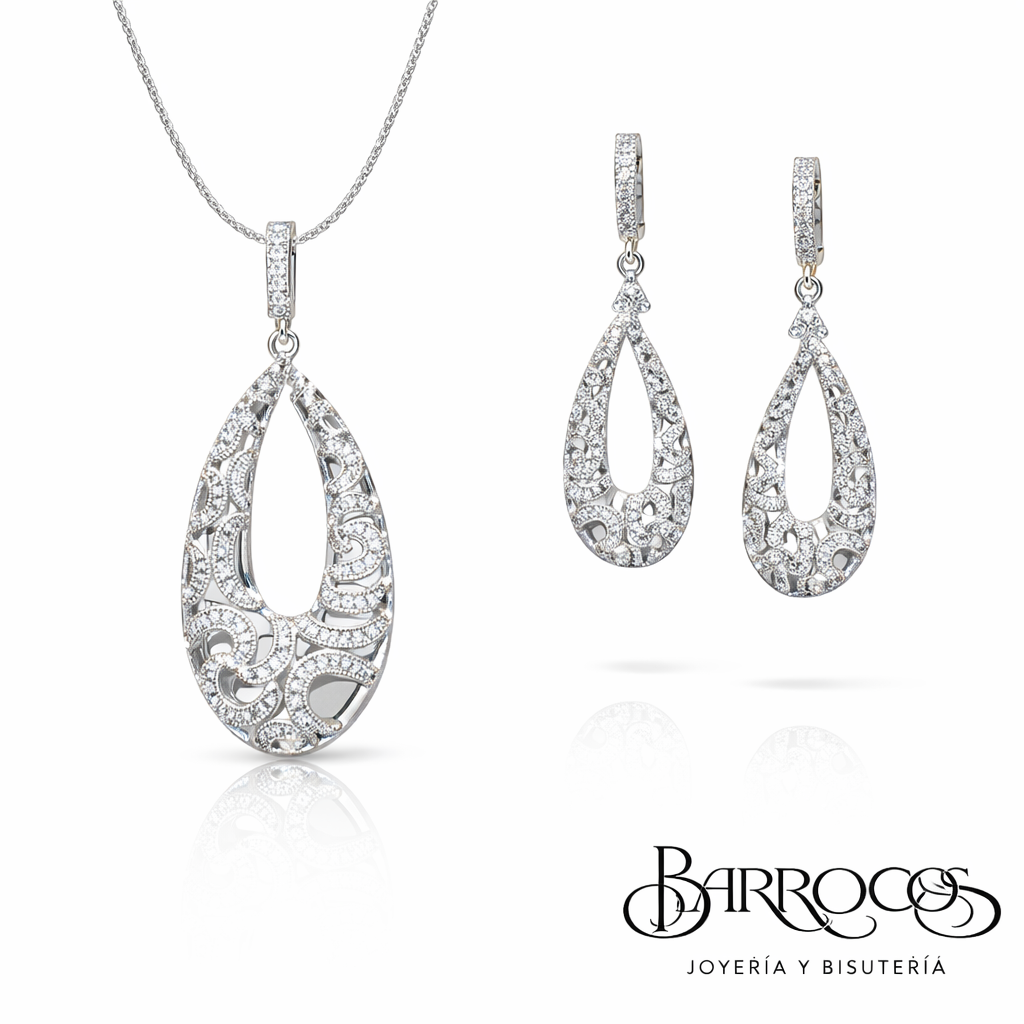 Juego de cadena con dije y aretes en plata 925 con circonia