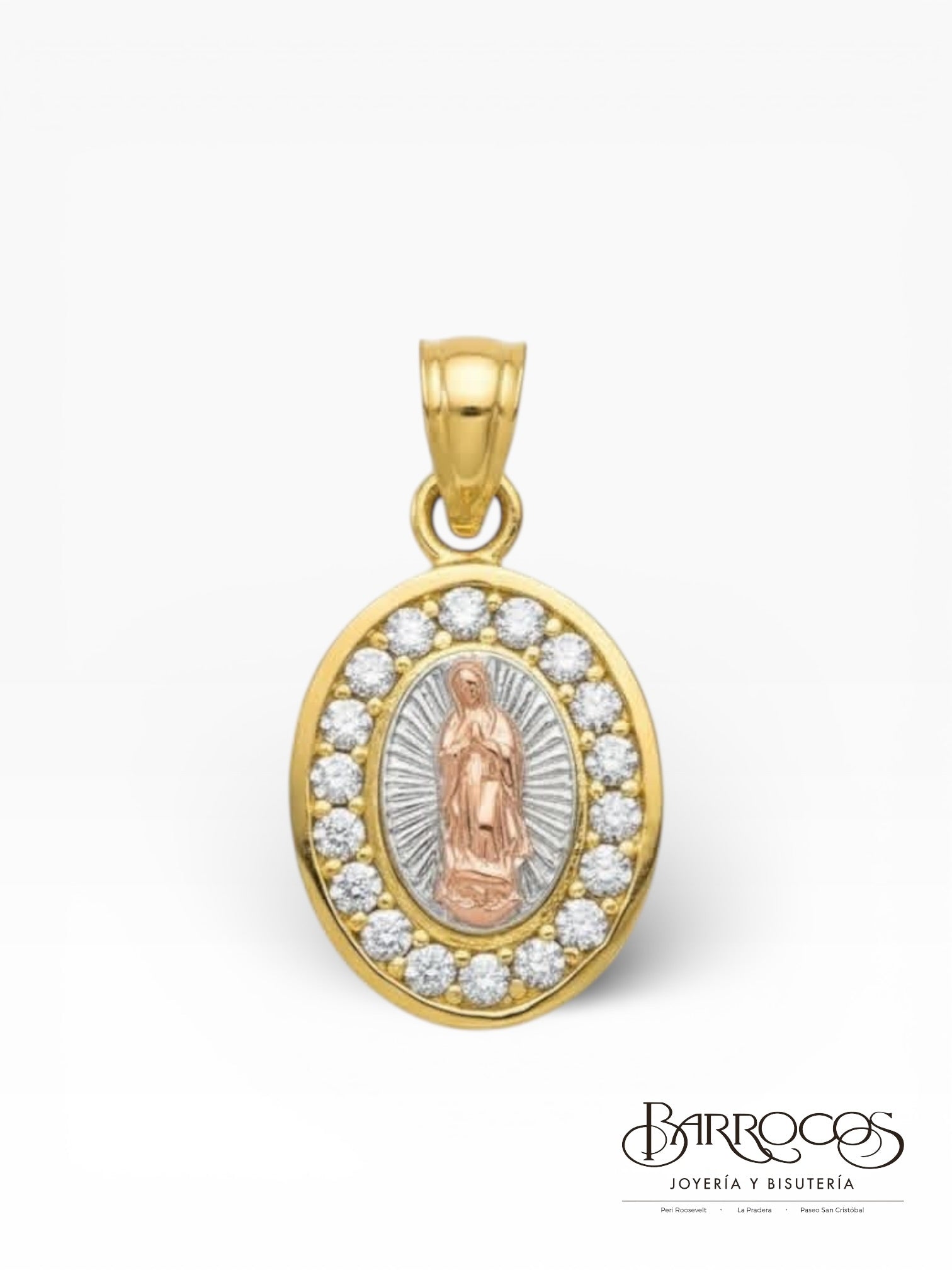 Colgante tipo medalla en oro amarillo con detalles en oro blanco y rosa