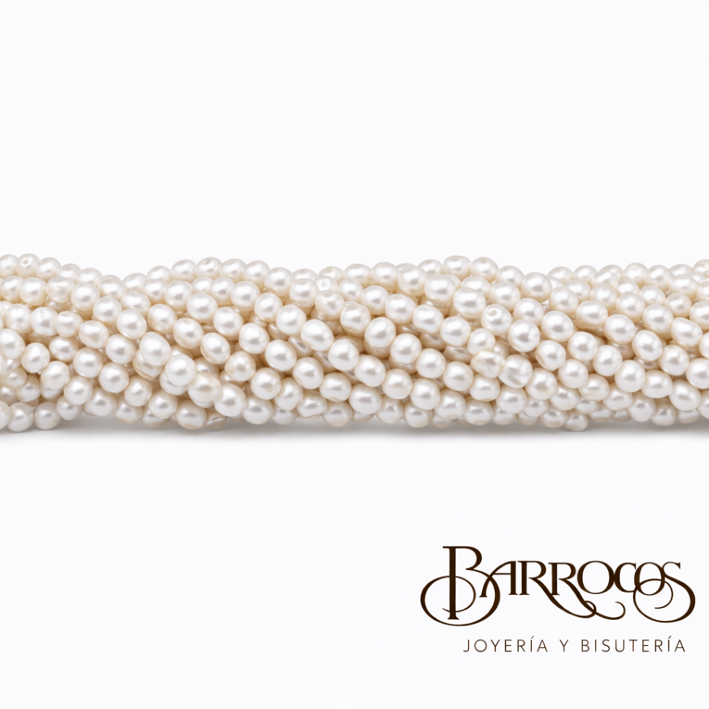 Hilo de Perla de Río Natural, Redonda Asimetrica, Aproximadamente cada Hilo Cuenta con 35 - 45 Piezas Dependiendo del Estilo